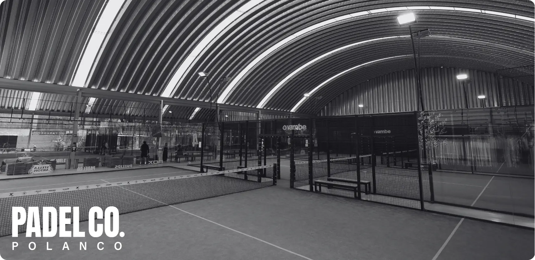 Padel Co San Miguel Chapultepec cuenta con 5 canchas full panoramic, pro shop, spa y gimnasio. Es un club pensado para vivir el pádel dentro y fuera de la cancha.