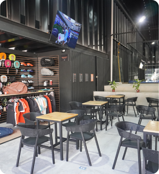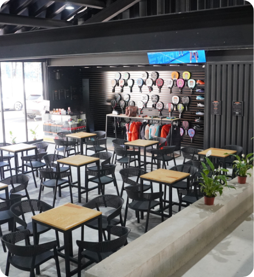 Padel Co Revolución combina 6 canchas full panoramic con pro shop, restaurante, gimnasio y áreas para espectadores, formando un club pensado para que el pádel sea parte de toda la experiencia.